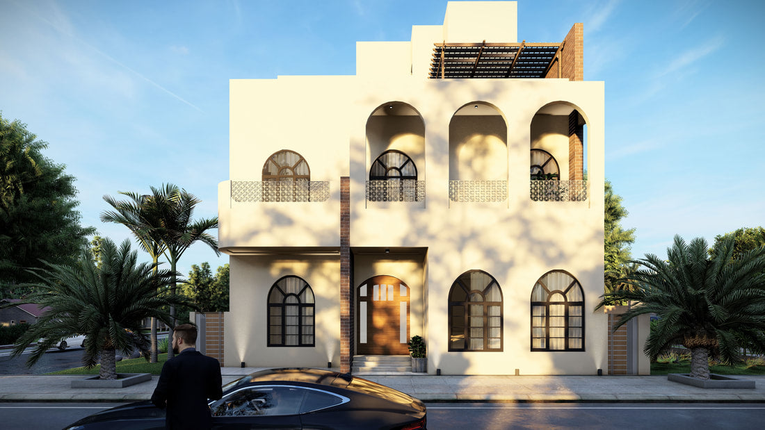 A traditional villa in Kuwait City with an arched window is a charming blend of heritage and elegance, offering a glimpse into Kuwait's rich architectural history with a touch of modern comfort