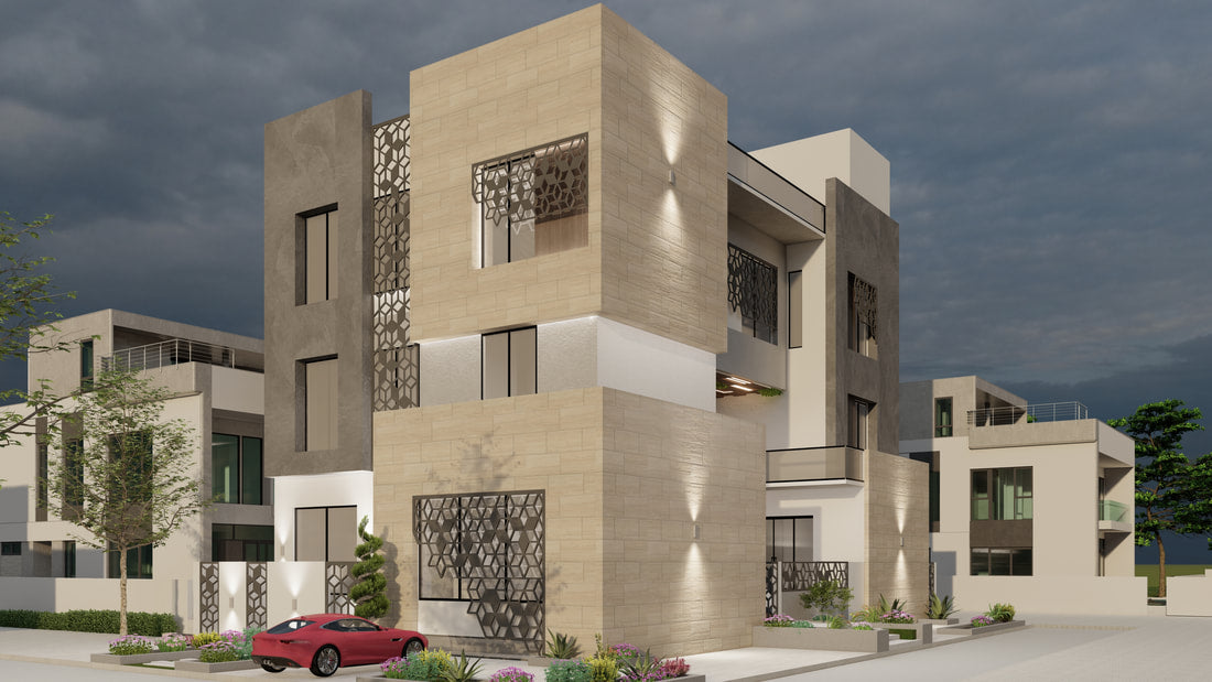 The Resort Villa is a 4 floors villa. The main core in the design is the swimming pool which was designed in the middle of this villa. The client wanted this house to be as a resort house which he can enjoy in the holidays. The villa has a modern exterior design with a mashrabiyah that gives a nice flow of the sun to the house.