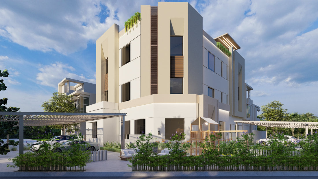 K.Villa is a gorgeous masterpiece. It features spacious terraces and a sleek, minimalist design with a clean white color scheme. It exudes elegance and modernity, creating a serene and inviting atmosphere. It's the perfect blend of style and comfort.
